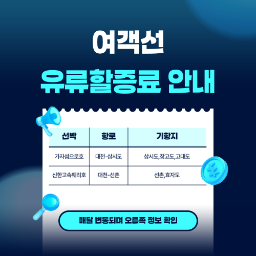 2025년 12월 대천-장고도 (삽시도) 항로 조석간만 관련 안내