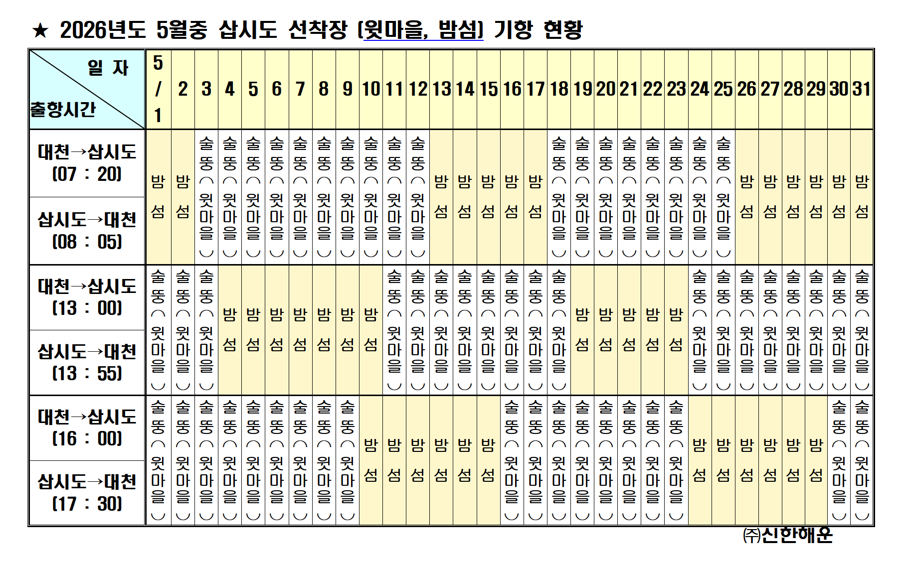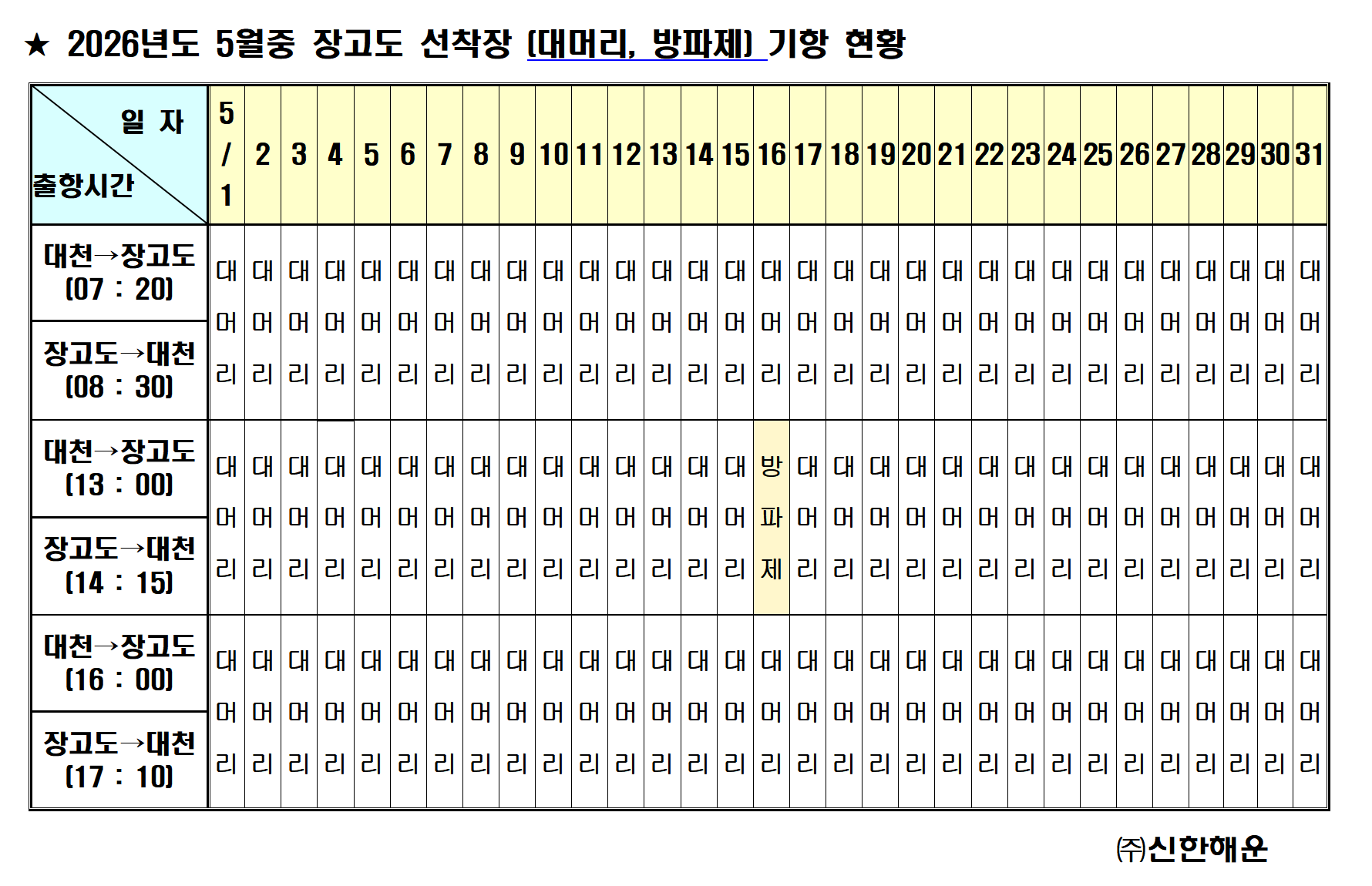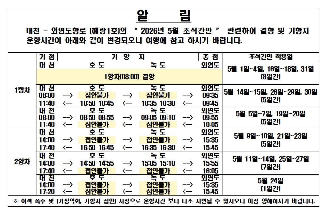 2026년 4월 대천-장고도 (삽시도) 항로 조석간만 ....